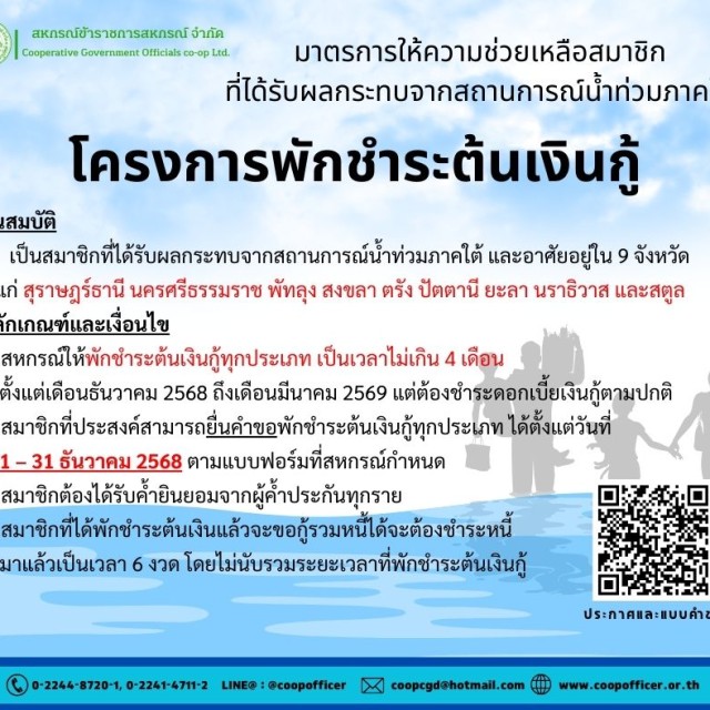 ประกาศสหกรณ์ฯ เรื่องมาตรการให้ความช่วยเหลือสมาชิกที่ได้รับผลกระทบจากสถานการณ์น้ำท่วมภาคใต้